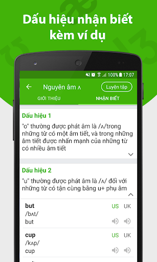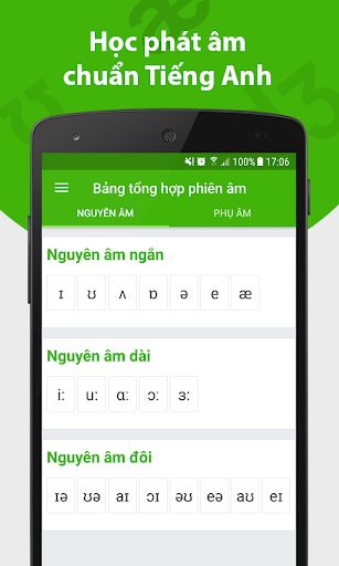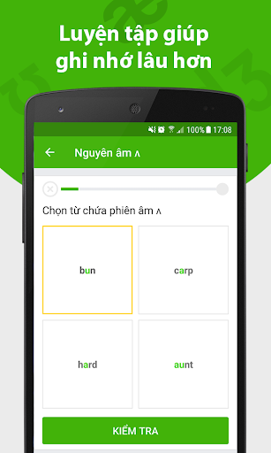 Ứng dụng còn giúp bạn dễ dàng vượt qua các bài kiểm tra phiên âm, trọng âm trong tiếng Anh với
