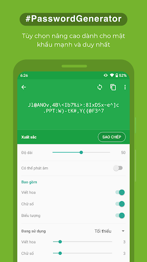 ✔️ Tạo mật khẩu mạnh - Xây dựng trình tạo mật khẩu tích hợp cho mật khẩu mạnh và duy nhất.