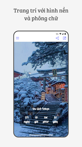 • Đếm ngược thời gian đến mọi sự kiện.