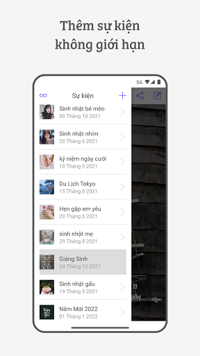 • Đếm ngược thời gian đến các ngày kỷ niệm.