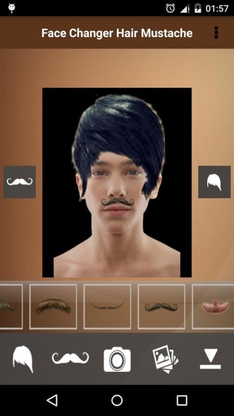 Hair and mustache studio makes it easy to change your hair and your mustache you've always wanted to, you have just to take a photo from the phone camera or to grab a photo from your photo library then modify your photo as you want and make your own fashion.