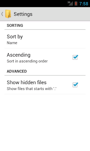 - Sort files by name, type, size, and time.