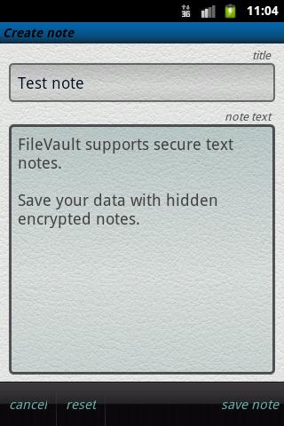 hide encrypt amp; secure your files.FileVault is a comprehensive android file security tool available absolutely free. Encrypt, hide and secure all types of sensitive files on your android device and enhance your privacy. Easily hide pictures, audio video, documents or any type of file on your memory card.Files added to FileVault are encrypted amp; hidden and will not show up in any application or filemanager. FileVault is passwordprotected and implements advanced encryption algorithms ARC4Blowfish for absolute file privacy.FileVault also provides a secure encrypted notes for storing your sensitive information such as passwords PINs etc in a safe manner. You can easily addvieweditshare encrypted text notes within FileVault.You can quickly add photosaudiovideo with gallerystyle selection or browse the entire SDcard to add any type of file. With a sleek intuitive UI, FileVault is easy to use and a definite must have for your android device39;s privacy.Features: Selectable encryption algorithm ARC4Blowfish128bitBlowfish256bit Intuitive file chooser to select media files easily. Encrypt and hide any file from SDcard. Supports all file types. Automatic logout cache flush on keyguard unlock. Sleek, modern UI. Absolutely free