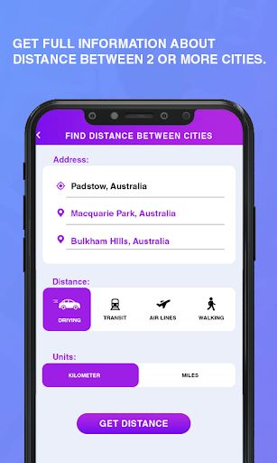 Ứng dụng này tìm khoảng cách giữa các thành phố giúp tìm khoảng cách (Lái xe / tàu / không khí) giữa 2 thành phố trở lên ở bất cứ đâu trên thế giới.