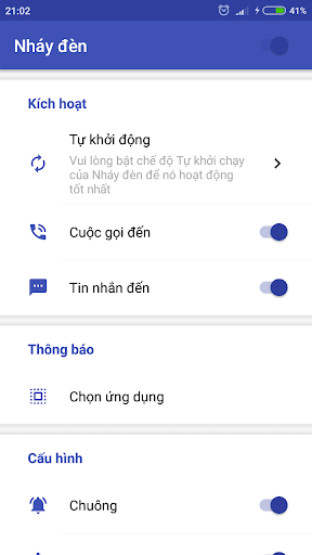 ✔ Cài đặt nháy đèn Flash khi điện thoại nhận cuộc gọi đến, thông báo ở chế độ các chế độ: rung, im lặng hoặc bình thường.