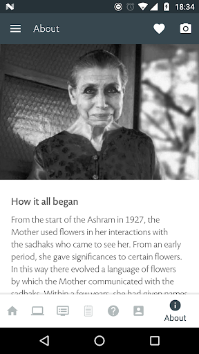 Ngay từ đầu Sri Aurobindo Ashram năm 1927, người mẹ đã sử dụng những bông hoa trong tương tác với những người sadhaks đến gặp cô. Từ một thời kỳ đầu, cô đã đưa ra ý nghĩa cho những bông hoa nhất định. Bằng cách này, việc phát triển một ngôn ngữ của những bông hoa mà người mẹ truyền đạt với Sadhaks.