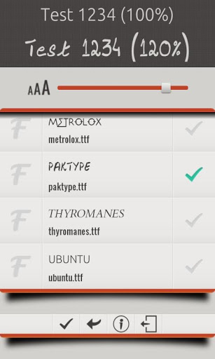 GET SPECIAL SOMYAC OFFER FOR YOUR galaxy DEVICESFont manager allows you to fully customize font in SAMSUNG GALAXY DEVICES smartphones and tablets. Using Font Manager you can replace system font and change smoothly increase or decrease font size.Font Manager provides fifteen new, beautiful fonts each of them can be easily set in your device. READ CAREFULLY INSTRUCTIONS IN application ROOT NOT REQUIRED FOR SAMSUNG GALAXY DEVICES EVERYTHING IN EASY AND INTUITIVE WAYtags font, font manager, font zoomer, big font, font magnifier, font customization, font pack, new font