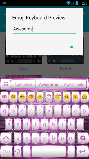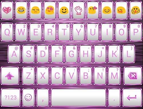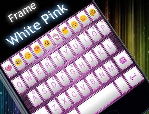 Đây là một chủ đề với các nút màu trắng màu trắng được trang trí bởi một khung kim loại sáng bóng của vàng hồng cho bàn phím biểu tượng cảm xúc - phiên bản dễ thương hoặc cao cấp hoặc KK).