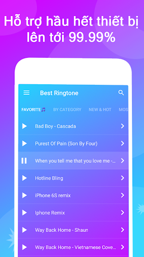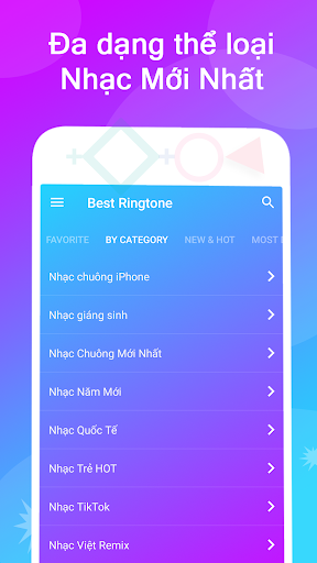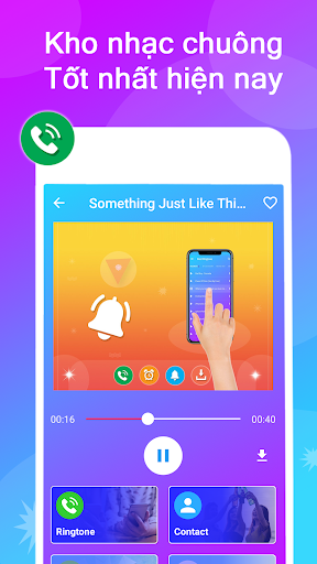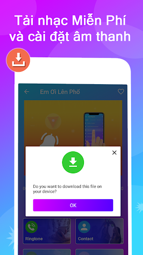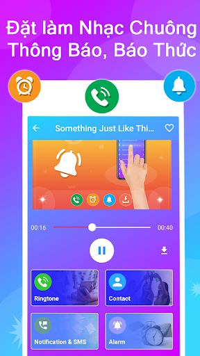 và mang đến cho bạn cả một kho nhạc chuông khổng lồ (lên tới 10.000+ bài hát) vô cùng hấp dẫn và tuyệt vời. Bạn có thể tải xuống và dễ dàng thay thế nhạc chuông nhàm chán, âm thanh thông báo, âm thanh báo thức... chỉ với một vài thao tác đơn giản.