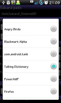 ,press Menu->Click "Setting"->Check "/sdcard/Android"->back to list.