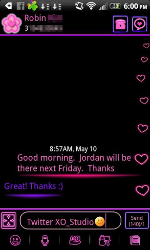 Theme is NOW FREE.Get this Beautiful theme with fantastic pink neon hearts on minimalist design. INSTALL INSTRUCTIONS @http:goo.glMq0FR.Matching Theme available now: DOWNLOAD quot;GO CONTACTS Pink Neon Hearts themequot; HERE. NEWS XOThemes now have GO CONTACTS themes to match our SMS themes.Our GO SMS new themes also come with 12 fonts. INSTRUCTIONS You need 2 apps: this theme and the awesome GO SMS PRO appFREE.1Download Theme.2DOWNLOAD FREE quot;GO SMS PROquot; HERE: http:goo.glz1HKo3Open quot;GO SMS PROquot; HIT MenuThemeInstalledThis themeApplyBack.THEME39;S NOW CHANGED HELP SECTION Instructions page: http:goo.glMq0FR NOTICE: Jelly Bean android 4.0.x phones users have known issues download themes on google Store.This is NOT an issue with our themes.Please email me, we will take care of that for you.Need more HELP? Please send an Email to ten.designer@gmail com Want a different FREE theme? No Problem CLICK HERE for our 150 THEMES...NEW SERIES:5 or more themes in each CLICK HERE for quot;GO SMS PRO Zebra Love Themes Seriesquot; CLICK HERE for quot;GO SMS Pink Diamond Themes Seriesquot; CLICK HERE for quot;GO SMS Theme Cool iPhone Seriesquot; ABOUT XO STUDIO 1 New Themes DAILY, follow us http:www.twitter com@xostudio2 Click on More by Developer in this page to see more themes3 More Themes@ http:xothemes.blogspot.comCheck out our new affiliate themes: search GOOGLE PLAY STORE:EYE4THEMES ABOUT THEME DESCRIPTION Remember to ratereview to help other usersTITLE: Minimalist Pink Neon Heart Theme for FREE GO SMS PROTestimony:Jordan July 28, 2012 Version 1.0Fantastic and Unique Love itDo you like FREE Pink Purple Neon and hearts theme with minimalist design?Maybe you want girly girlie things like stars, hearts, bubbles, paw prints, butterflies, sparkles and glitters incorporated with custom matching pink, purple, white, black and gray colors? Then you will love this theme features.FREE Minimalist Pink Neon Hearts Hearts Float Theme for FREE GO SMS PRO FEATURES:GO SMS Cute Hearts Theme Superbly beautiful, cute and cuddly styled with tons of customization options. Ultra clean minimalist theme Include all the latest NEWEST icons for the latest GO SMS Pro V4.52 and ICS amp; Jelly Bean Android 4.0 Google Operating system. XO unique custom Hearts Float, Neon and Minimalist design stunning wallpapers and clean, beautiful icons Fantastic highresolution HD main background with custom minimalist neon bubbles and background, designed by XO Studio from the scratch. 100 themed out message main background, textingchat interface, GO chatContacts and app. CenterSincerely,XOThemesDisclaimer: To support making of our themes, this free version periodically presents Airpush advertisements in your notification bar andor icons. The permissions are for advertising.If you have issues with ads, search Google Play for an official airpush blocker and use our themes without any advertising.Another option is CLICK HERE TO BUY THE DONATE VERSION Absolutely NO Ads::http:goo.glc7icR