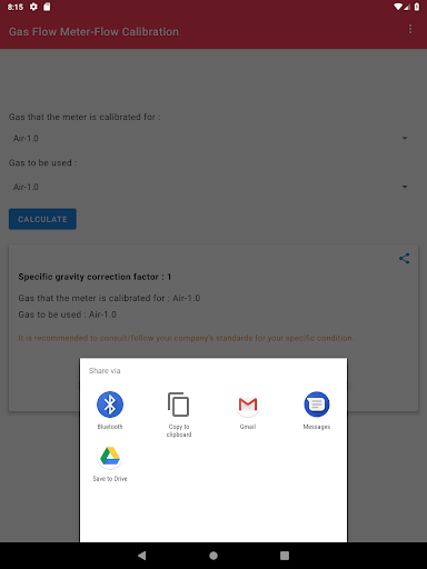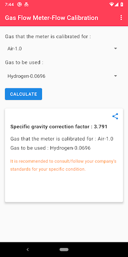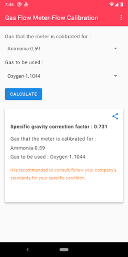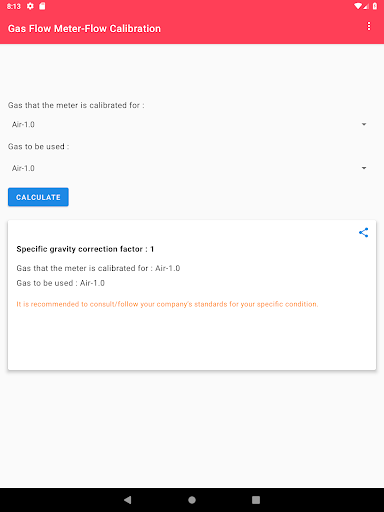 Nếu một đồng hồ đo lưu lượng khí cần được sử dụng cho bất kỳ loại khí trọng lượng cụ thể nào khác ngoài những gì đồng hồ đo lưu lượng được hiệu chỉnh, một yếu tố hiệu chỉnh trọng lượng cụ thể cần phải được áp dụng trước khi sử dụng khí mới (dưới áp suất khí đầu vào được chỉ định).