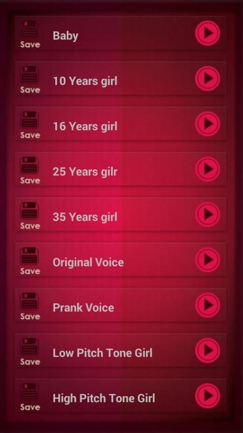 Just record your own voice and listen your sound in different girl’s voice tones, it will listen yourself how you sound in girl voice. The Recorded sounds are available to check it later. Also you can save the girls voices into SD card. Furthermore the girl voice changer application can list them in your own. You can see the list of the saved girl’s voices.