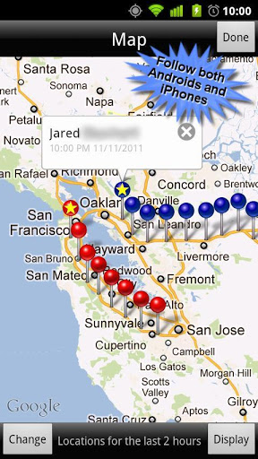 The Global Phone tracker is a tool that allows you to track the location of another Android or iPhone user.Now you can follow the movements of a friend, your spouse, your child or a coworker with you Android.Track one other Android or iPhone for FREEThe Global Phone Tracker combines the robust GPS functionality of the Android, internet mapping and the latest features of the Android platform. Features include: Locate another person and view hisher movements during the previous 4 hours. Permission based system allowsdenies other users to follow you. GPS options to reduce battery usage. Simple registration process. Follow both iPhones and Android phones.Uses include: Follow your child39;s movements during the day. Know where a family member is at any time. Track an employee39;s travel route. Locate friends.find lost or stolen phones.Other items: This version allows you to track 1 person and see hisher movements for 4 hours. Upgrade allows you to follow up to 10 people and see their movements for 48 hours. To follow another person, they must use the quot;Phone Trackerquot; to grant you permission. Continued use of GPS running in the background can dramatically decrease battery life. IF YOU HAVE ANY PROBLEMS, email US AT: HELP@PhoneTracker.us.com