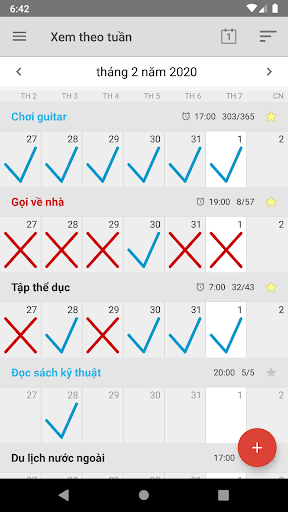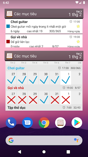 Lượt xem lịch tiến trình hàng tuần. Đăng nhập tất cả các thói quen trên một màn hình.
