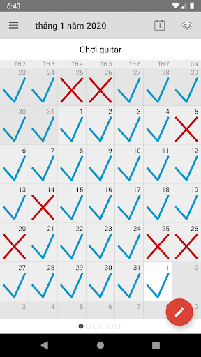 Xem lịch hàng tháng. Đăng nhập tất cả các ngày trên một màn hình.