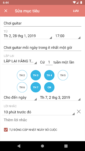 Lên lịch thói quen cho bất kỳ sự kết hợp của ngày trong tuần.