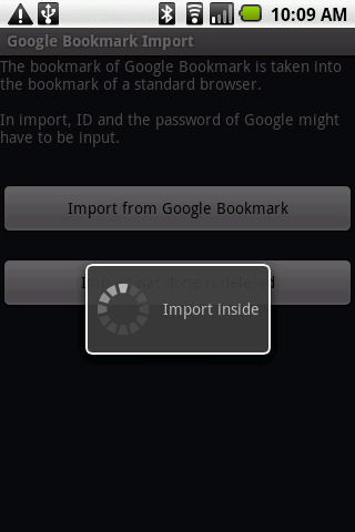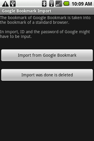 The bookmark of google Bookmark is taken into the bookmark of a standard browser It succeeds in 900 import in nexus one and HT03A.Version 1.0.120100204ID, has been renovated to make it easier to enter a password
