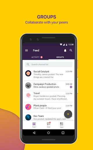 Groupe.io cho phép truyền thông và truyền thông nhóm toàn doanh ích. Bạn có thể phát thông tin từ trên xuống, gửi tin nhắn được nhắm mục tiêu đến các nhóm hoặc trò chuyện một-một, trên các kênh và thiết bị. Bạn có thể chắc chắn rằng tất cả mọi người nhận được thông báo với biên lai đọc kỹ thuật số, làm cho giao tiếp hàng loạt hiệu quả. Mạng nội bộ được thực hiện hiệu quả hơn với các tính năng đặc biệt của ứng dụng xây dựng nhóm này như phát sóng thời gian thực, thức ăn hoạt động, trò chuyện ngang hàng, trò chuyện nhóm, nhóm thức ăn, giao tiếp quan trọng, trao đổi tập tin và phân tích.