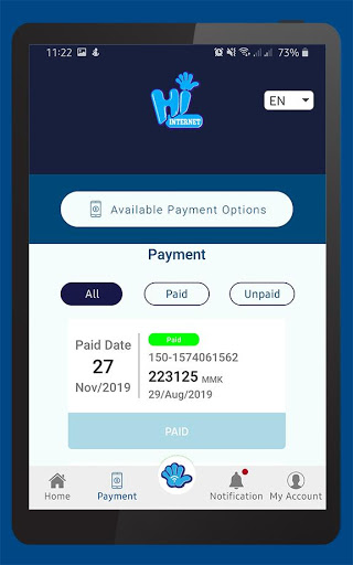Ứng dụng di động để sử dụng và quản lý Internet Xin chào.Ứng dụng này được thiết kế để sử dụng với tài khoản mới và sẽ cho phép bạn kiểm tra hồ sơ thanh toán và lịch sử vé dịch vụ.Với ứng dụng Hi Internet, bạn có thể