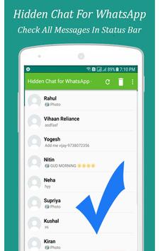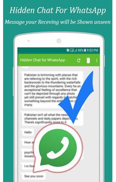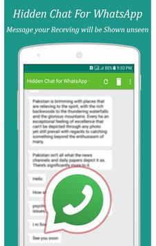 Hidden Chat for Whats Message- Unseen Chat App for WhatsApp Messenger unseen messenger. Using this app you can read incoming messages without showing double blue tick, read sign and online status no last seen.