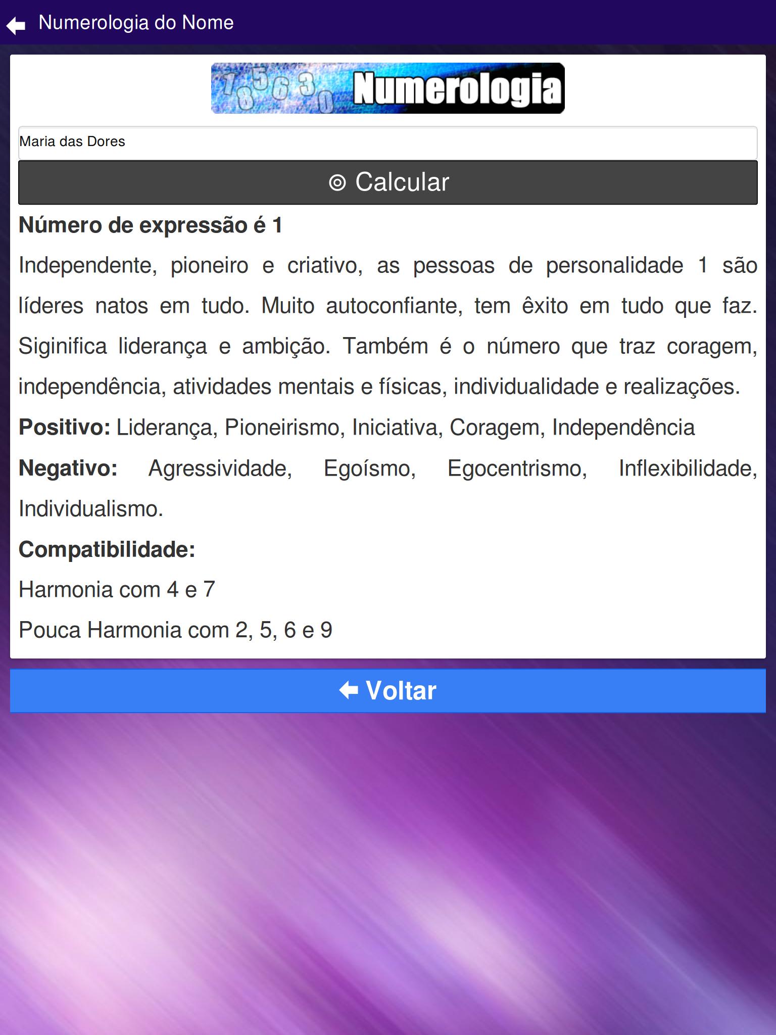 Além disso, neste aplicativo você poderá ainda calcular a numerologia dos nomes.