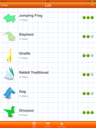 Ứng dụng "Cách làm động vật Origami" rất đơn giản và dễ sử dụng. Thực hiện theo các hướng dẫn từng bước và xem hoạt hình 3D một cách cẩn thận. Và đừng lo lắng, bạn phải cố gắng thực sự khó hiểu.