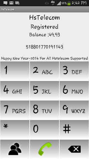 • HS Telecom là điện thoại mềm dựa trên SIP.Bạn có thể gọi cho bạn bè và gia đình của bạn từ HS Telecom với tỷ lệ cuộc gọi quốc tế thấp nhất!Và chất lượng rất tốt.