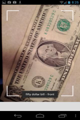 6. Slowly raise your device directly upwards until it speaks the denomination and face of the note.