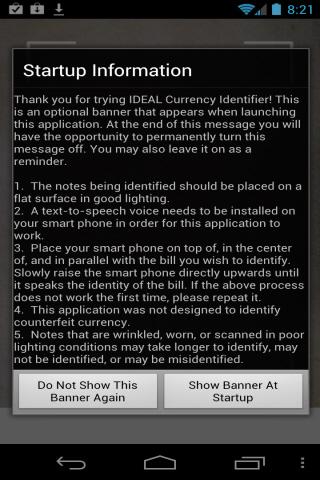 1. Launch IDEAL Currency Identifier