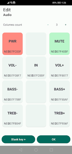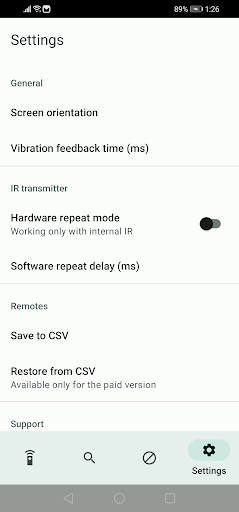 Với ứng dụng này, bạn có thể cố gắng tìm mã IR cho thiết bị của mình, lưu các mã tìm thấy dưới dạng bảng điều khiển.Có thể chọn một điều khiển từ xa cho đèn chùm, quạt, âm học và các thiết bị đơn giản khác.