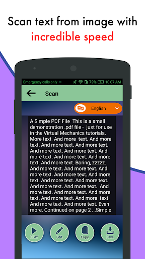 Lấy bất kỳ phần nào của sách hoặc báo và chuyển qua OCR sau đó nhấp vào Dịch để nhận dịch bằng bất kỳ ngôn ngữ nào và sau đó nghe đoạn văn bản dịch đó dưới dạng sách âm thanh trong ngôn ngữ địa phương của bạn. "Hình ảnh để chuyển đổi văn bản, PDF OCR, quét và dịch" Hỗ trợ hơn 30 ngôn ngữ để quét và dịch.