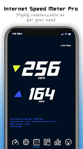 Internet Speed Meter Pro - Giám sát tốc độ Internet trực tiếp hiển thị tốc độ Internet của bạn trong thanh trạng thái và hiển thị tốc độ thời gian thực của Internet và dung lượng dữ liệu được sử dụng trong bảng thông báo và trong tiện ích màn hình nổi.Điều này giúp bạn theo dõi kết nối mạng bất cứ lúc nào trong khi sử dụng thiết bị của mình.