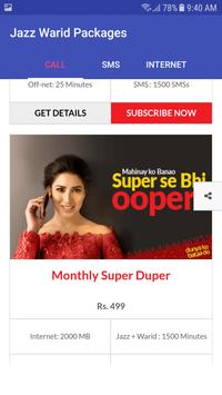 We created this app to more improve user experience.in this app you can activate any jazz warid package like jazz sms package warid sms package jazz call package warid call package warid internet package jazz internet package all is in this app simply you have to open this app and select you package and tap on activate button it will auto activate your package which you selected. also you can get detail of any sms call internet package code which you can use as string to activate any package jazz warid. thank you