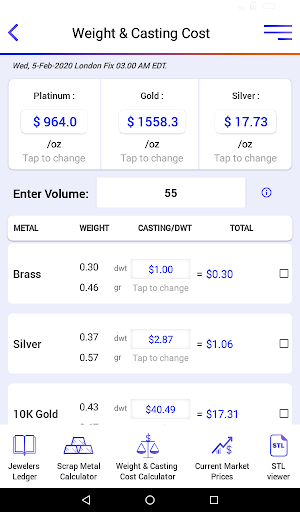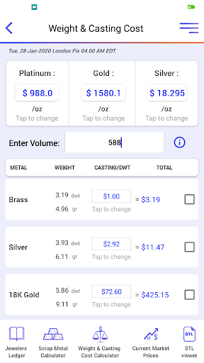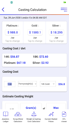 -có chi phí đúc / DWT của kim loại quý chính và xem tổng chi phí đúc kim loại mong muốn Dựa trên giá thị trường hiện tại