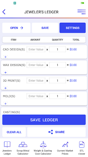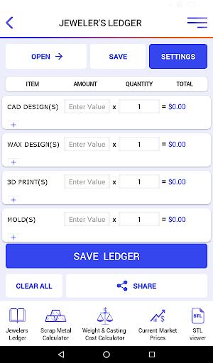 • Máy tính chi phí trọng lượng & đúc (TÍNH TOÁN LỚN Thiết kế CAD của bạn để tính toán trọng lượng và chi phí gần đúng của mảnh của bạn trong các kim loại quý chính (Bạc, 10k, 14k, 18k, Platinum)