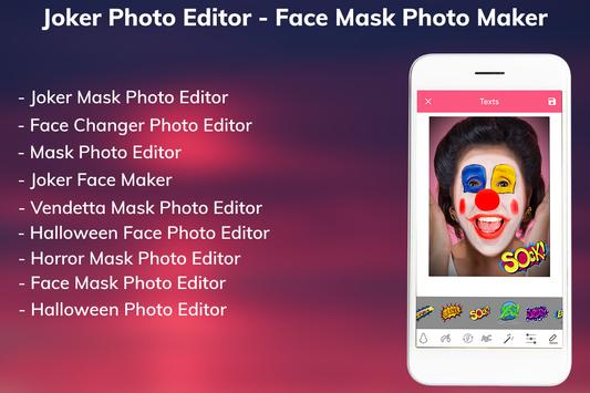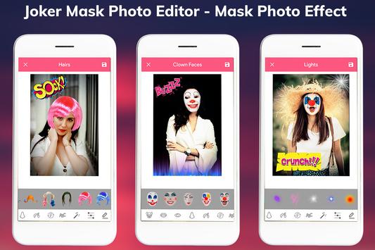 This will help you to make joker photo yourself and edit your photos like a joker makeup editor. Let's try our joker dress up editor for easy Halloween face makeup ideas, without learning face painting or watching boring Halloween makeup tutorials. Joker mask Photo Editor - lets you put joker and clown mask on your face or any photo that you pick from gallery.