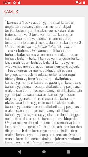 Từ điển lớn Indonesia (KBBI) là một từ điển tiêu chuẩn là tài liệu tham khảo chính cho Indonesia. Ứng dụng KBBI này không yêu cầu kết nối Internet hoặc có thể chạy trong các điều kiện ngoại tuyến. Ứng dụng KBBI là từ điển tiếng Indonesia gần đây và hoàn chỉnh nhất bao gồm hàng chục ngàn từ tiếng Indonesia. Ứng dụng này là miễn phí, nhẹ và rất dễ sử dụng. Kích thước của ứng dụng KBBI cũng nhỏ hơn nhiều so với các ứng dụng từ điển khác, do đó, nó có thể tiết kiệm dung lượng bộ nhớ.