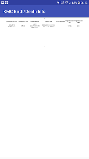 Các sự kiện tử vong được đăng ký Trong văn phòng chính KMC, Sở Y tế tại 5, SN Banerjee Road, Kolkata - 700 013 và Chứng nhận tử vong có thể được lấy từ đó tại chỗ sản xuất bản sao Giấy chứng nhận tử vong do tổ chức hoặc bác sĩ và chứng chỉ hỏa táng ban đầu.