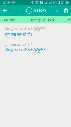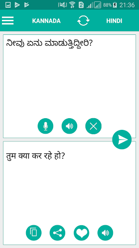 This free application is able to translate words and text from Kannada to Hindi, and from Hindi to Kannada.
