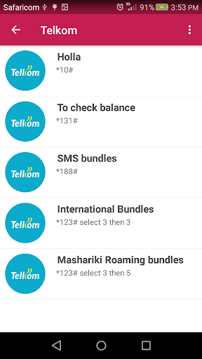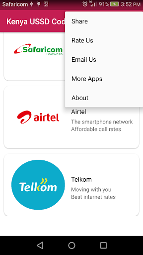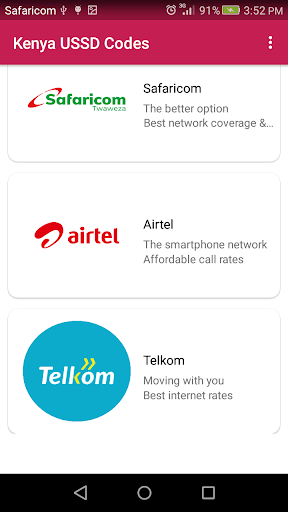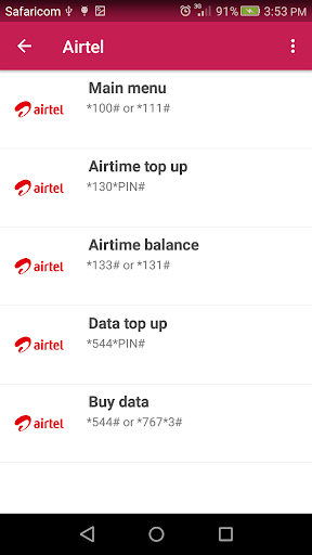 Safaricom, Airtel and Telkom USSD codes well arranged and a tap executes the command desired.