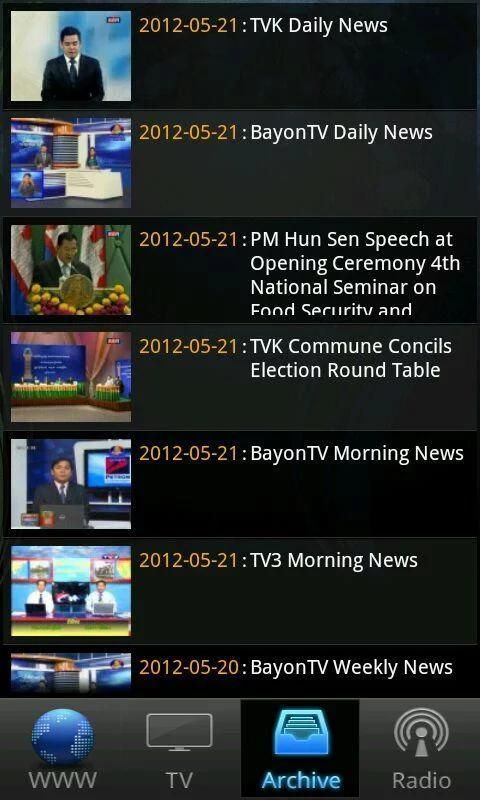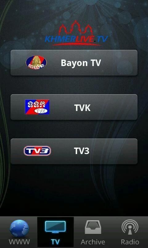 Watch live and archives Cambodian TV, TVK, BayonTV and TV3 and listen to Khmer radio.