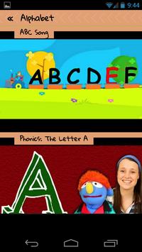 The videos are categorized into several different categories including learning (such as "alphabet" and "manners") and entertainment (such as "funny" and "sleep time").