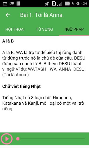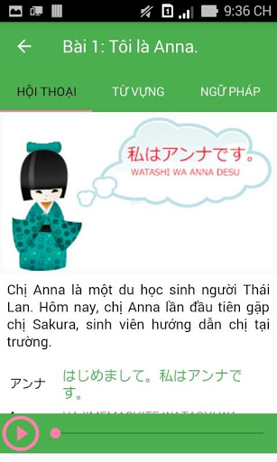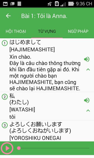 - Học tiếng Nhật giao tiếp dễ dàng thông qua các bài học audio. Tính năng này cần kết nối internet.