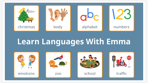 Làm thế nào để học ngôn ngữ với Emma giúp con bạn?Câu đố).được nói bằng giọng nói chuyên nghiệp với giọng nữ thân thiện.