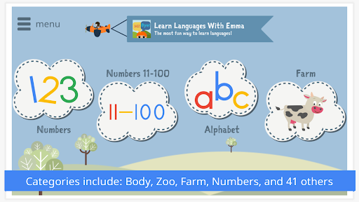 Giúp trẻ mới biết đi và trẻ mẫu giáo tăng từ vựng của chúng thông qua chơi bằng 8 ngôn ngữ: tiếng Anh, tiếng Tây Ban Nha, Pháp, Đức, Ba Lan, Thổ Nhĩ Kỳ, Hà Lan và Esperanto..