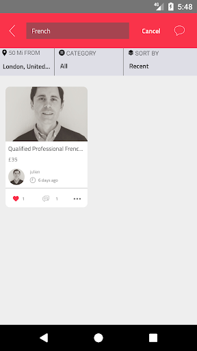_ Search for keywords or category, chat with teacher by his ad’s page, login with email, like and share ads, and a lot more.