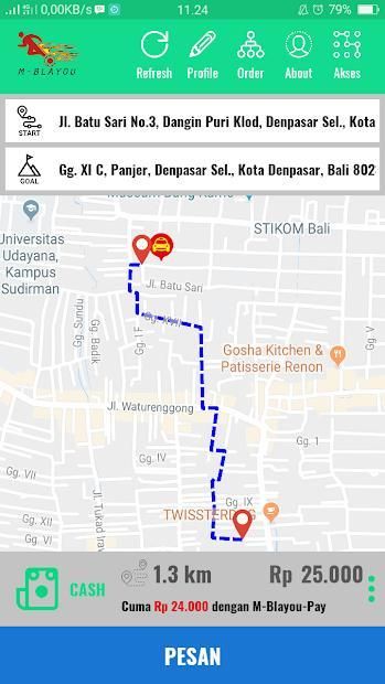Pelanggan bisa mendapatkan kendaraan dengan mudah hanya dengan menentukan lokasi dan tujuan di dalam peta.