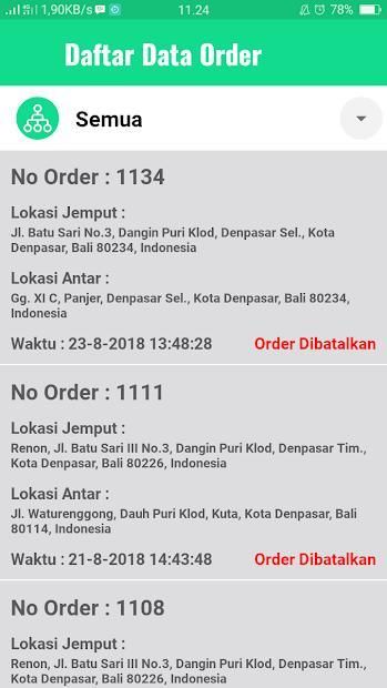Melalui admin panel kita juga dapat melihat history penggunaan layanan oleh penumpang dan melihat rincian perjalanan pengemudi.