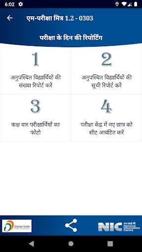 App to facilitate to Examination of class 5 and 5 of Government Schools of Madhya Pradesh. App facilitates Reporting of Absent Students.Exam Centre Incharge can upload photograph of Rooms of Exam Centre. A live video streaming can also be done through App.